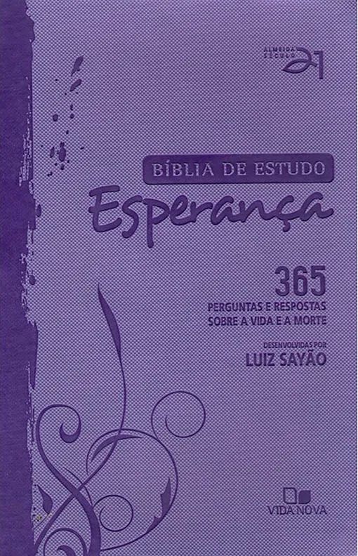 A Bíblia de Estudo Esperança é ideal para quem busca um estudo completo e ao mesmo tempo fácil de ser compreendido. A cada página, você irá encontrar de forma prática respostas, contidas no texto bíblico, para os mais diferentes questionamentos de sua própria vida. As respostas são objetivas, claras e abrangentes. Seja em casa, na família, no trabalho ou mesmo com os amigos, a Bíblia de Estudo Esperança servirá como sua ferramenta evangelística, apologética e de edificação. Conteúdo: São 365 perguntas e respostas divididas em 20 temas distintos: Deus e a Criação, Bíblia, Cristo, Pecado, Sabedoria, Salvação, Vida Eterna, Nova Vida, Igreja, Misticismo, Mundo Espiritual, Religião, Momentos Difíceis, Fraquezas, Sexualidade, Questões Difíceis, Família, Finanças, Mundo Atual, Datas e Textos Especiais. As perguntas foram cuidadosamente elaboradas a partir da doutrina, Bíblica fundamental, do contexto religioso brasileiro e do mundo contemporâneo.